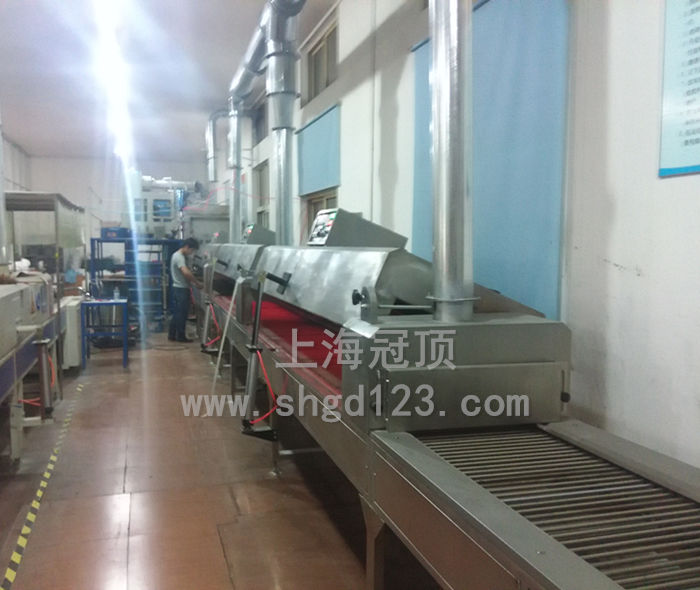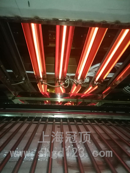 上海GUANDN公司生產的遠紅外線隧道爐(烘干線),根據產品性質的不同采用不同波段的遠紅外線發熱管。